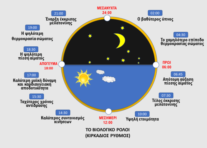 Συγχρονισμός του τρόπου ζωής μας με το βιολογικό μας ρολόι (δείτε την εικόνα πιο κάτω)